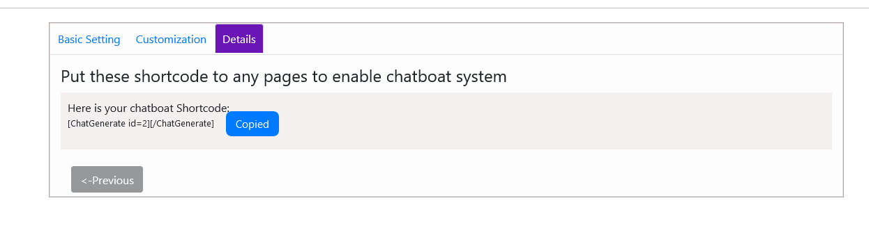 Once installed, go to the Asycybex menu option in wordpress admin, and Start to make a new shortcode. Once shortcode is created, you can place it on any page like home page or footer and chat bot will appear there as customised