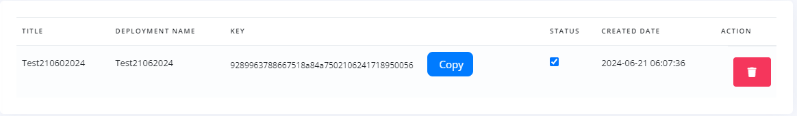 Once the training is complete, generate the API key using the API Key option in left sidebar.